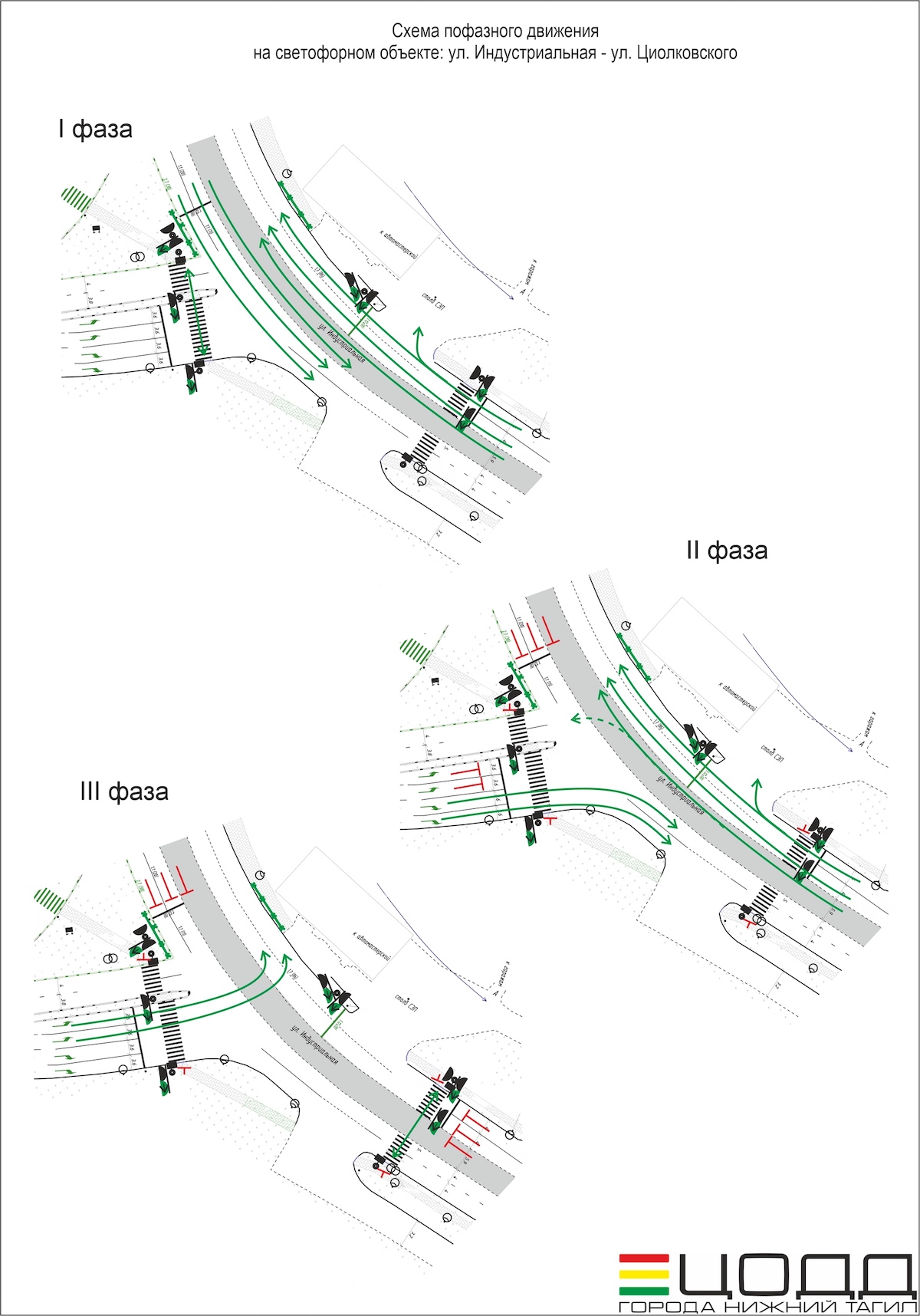 В Нижнем Тагиле на одном из самых загруженных транспортных узлов — пересечении улиц Индустриальная и Циолковского меняют схему организации движения. Чтобы увеличить пропускную способность, светофор переведут с четырёхфазного режима на трёхфазный — за счёт установки дополнительных секций со стрелками, рассказали в Центре организации дорожного движения.