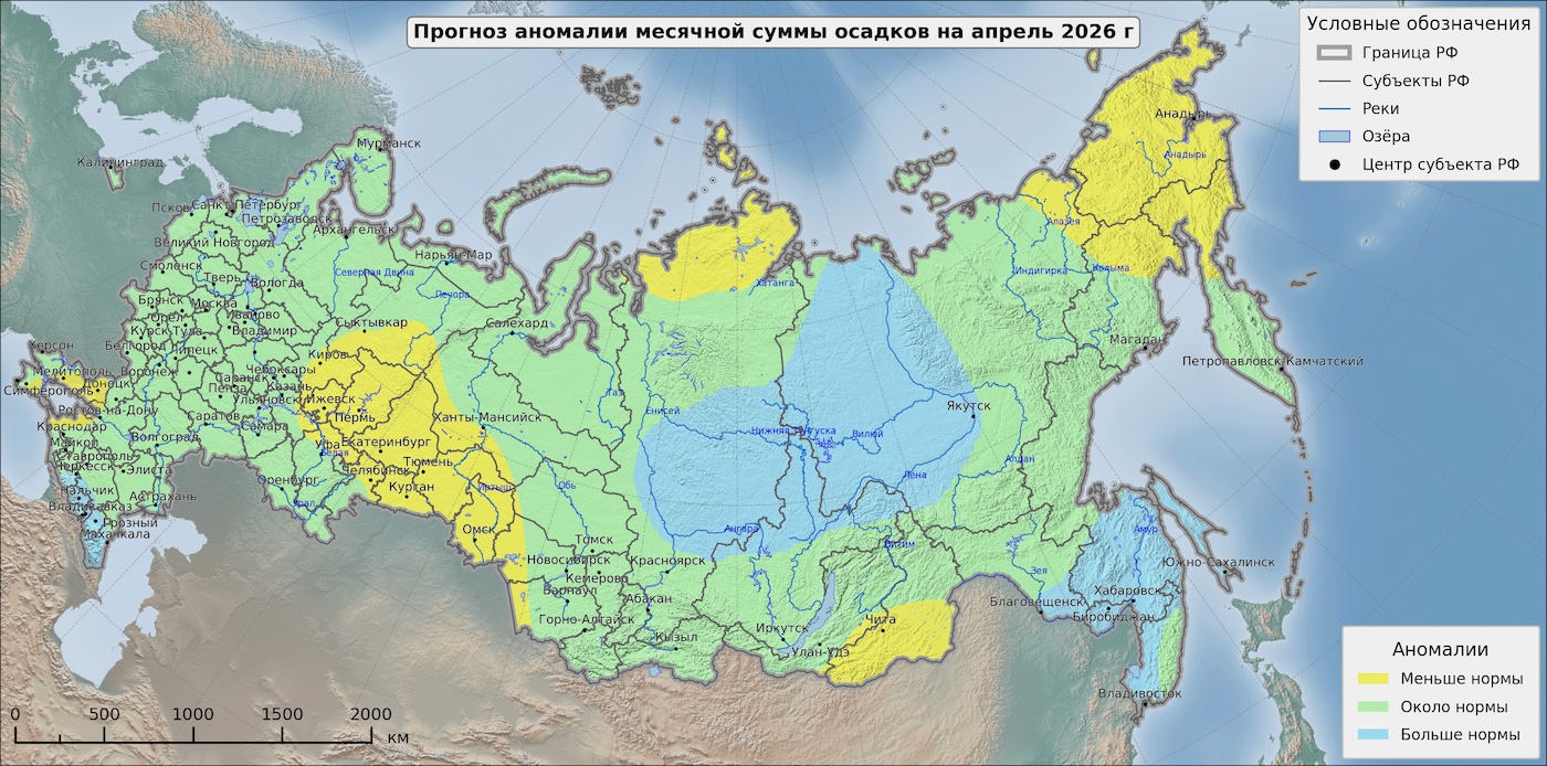 На большей части страны апрель ожидается теплее обычного, при этом наиболее заметное превышение температурных норм затронет европейскую территорию и Урал. Для запада европейской части России, юга страны и большинства регионов Сибири температурный фон будет близок к средним многолетним значениям. Распределение осадков также будет неравномерным: их дефицит прогнозируется, в частности, на Урале и в Поволжье, а избыток — на Северном Кавказе.
