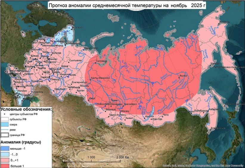 По прогнозу Гидрометцентра России на отопительный период, Свердловскую область ждет ноябрь со средней месячной температурой в пределах нормы или выше многолетних значений на 0...+1 °С, которая для Екатеринбурга составляет -5,4 °С. При этом в учреждении подчеркивают, что по сравнению с прошлым годом местами будет прохладнее: «Ниже, чем в ноябре 2024 года средняя месячная температура воздуха ожидается <...> на севере Уральского федерального округа».