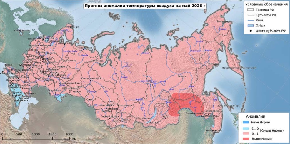 В ведомстве подчеркивают, что это не ежедневный график погоды, а научный анализ вероятных отклонений от климатического стандарта с достоверностью 65–70%. Подобные сведения используются федеральными структурами для оценки рисков в ключевых отраслях экономики и планирования мер по предотвращению чрезвычайных ситуаций.