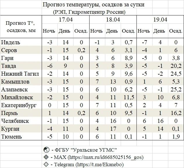 Причиной резкого ухудшения погоды станет мощный циклон, который надвигается на Урал с Кольского полуострова. В Свердловскую область он придет в субботу, 18 апреля, и задержится на несколько дней. Согласно данным Уральского гидрометцентра, за предстоящие выходные (18 и 19 апреля) наибольший удар стихии примут на себя восточные и центральные районы области. Лидером по суммарному количеству осадков станет Нижний Тагил, где прогнозируется 34,1 мм при месячной норме в 29 мм. В Екатеринбурге за этот же период выпадет около 7,5 мм.