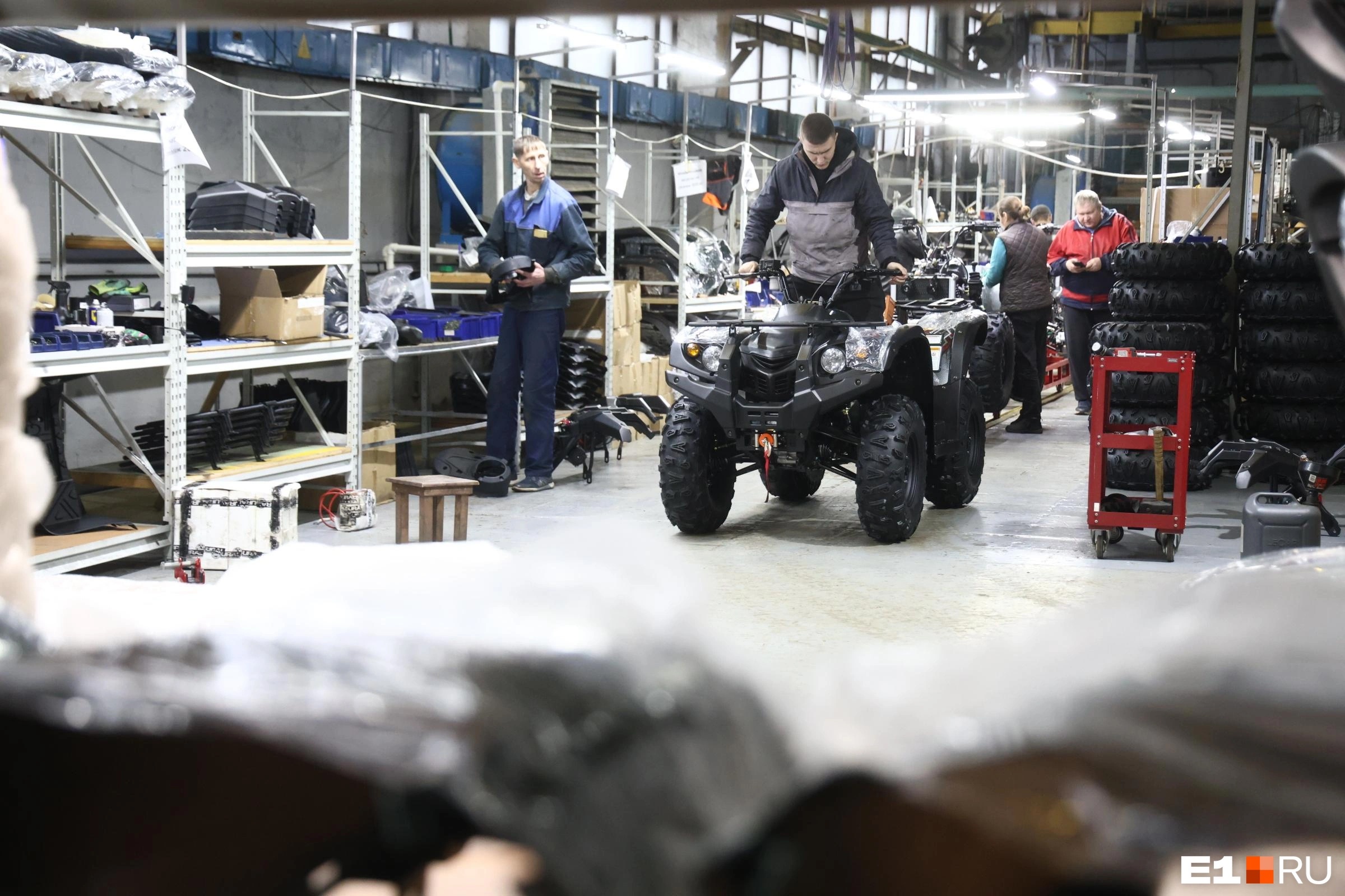 На сборочной линии, где занято около 30 сотрудников, выпускают полноприводные квадроциклы, которые сертифицированы для передвижения по дорогам общего пользования. Как уточняет производитель, модель была разработана более 20 лет назад на базе известного японского квадроцикла Yamaha Grizzly.