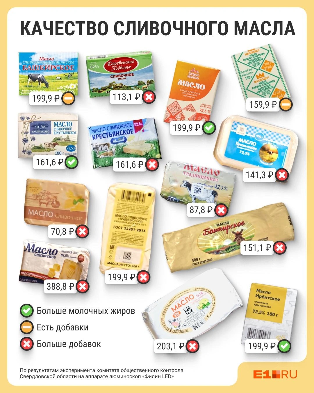 «В составе хорошего масла преобладает молочный жир, это натуральный продукт. В плохом масле преобладает растительный жир. Это очень дешевые компоненты, примеси могут быть самыми разными: от пальмового масла до химикатов», — прокомментировал методику заместитель председателя комитета общественного контроля Свердловской области Иван Вохмянин.