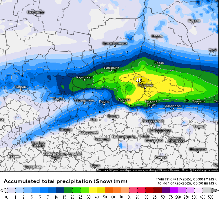 «Появилась некоторая определённость с зоной снегопадов на воскресенье, 19 апреля. Модели ICON и ECMWF (как обычная, так и нейросетевая) пришли к общему выводу, что юг Свердловской области останется в этот день без снега. Основные осадки придутся на центральные и северные районы области и Пермского края», — рассказал он.
