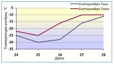 Однако именно в пятницу начнется перелом в погоде, поскольку днем температура воздуха повысится до -15...-20°. Судя по графику, опубликованному Уральским гидрометцентром для Екатеринбурга, уверенное потепление начнется с субботы, 27 декабря. В этот день ночная температура в столице Урала составит около -16°, а дневная поднимется до -10°. К концу выходных морозы окончательно отступят: в воскресенье и ночные, и дневные температуры будут держаться в пределах -10...-11°.