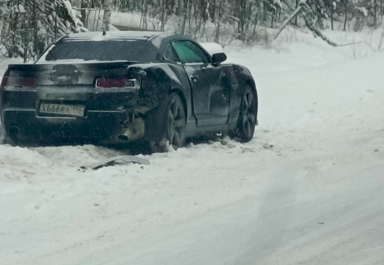 На записи видно, как попутные грузовик и легковушка теряют управление на скользкой дороге, после чего многотонник в неуправляемом заносе врезается в стоящий на обочине Chevrolet Camaro. Судя по обстановке, американскому маслкару досталось уже во второй раз: рядом с ним припаркован разбитый манипулятор, а в кювете лежат УАЗ Патриот и еще один грузовик.