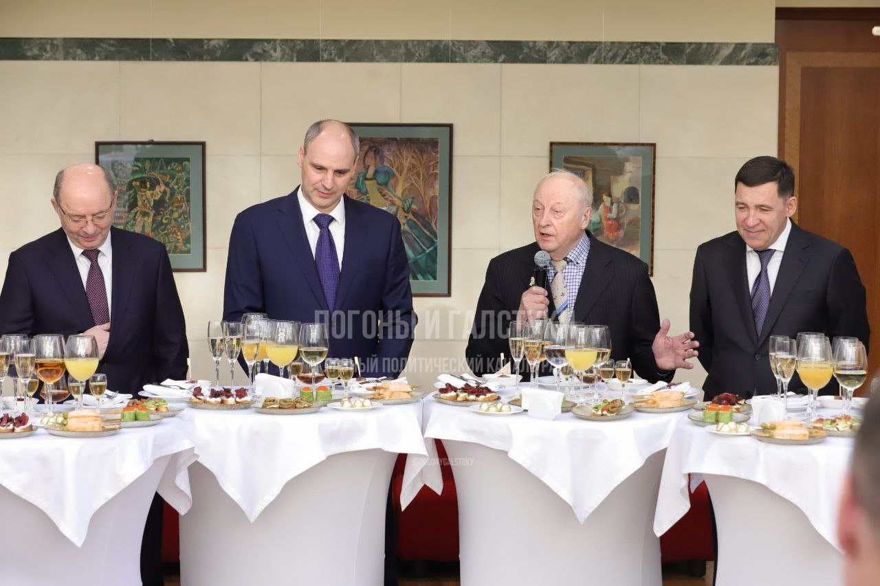 В ходе официальных торжеств, посвященных 92-летию со дня образования Свердловской области, в резиденции губернатора состоялась знаковая встреча политических тяжеловесов разных лет. Как сообщает URA.RU, организаторы мероприятия разместили в первом ряду сразу трех бывших руководителей региона: Евгения Куйвашева, Александра Мишарина и Эдуарда Росселя.